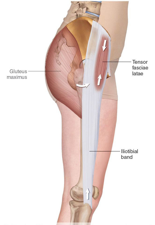 The pain is usually to halfway down the Ilotibial Band hereon known as the IT band. If you press in, halfway down it may hurt at one particular spot. There may be a tendancy to massage this spot. I have known it to work, but the problem is with the Tensor Fasciae Latae being tight. Or TFL from hereon in. What you are getting is ‘reffered pain’.
