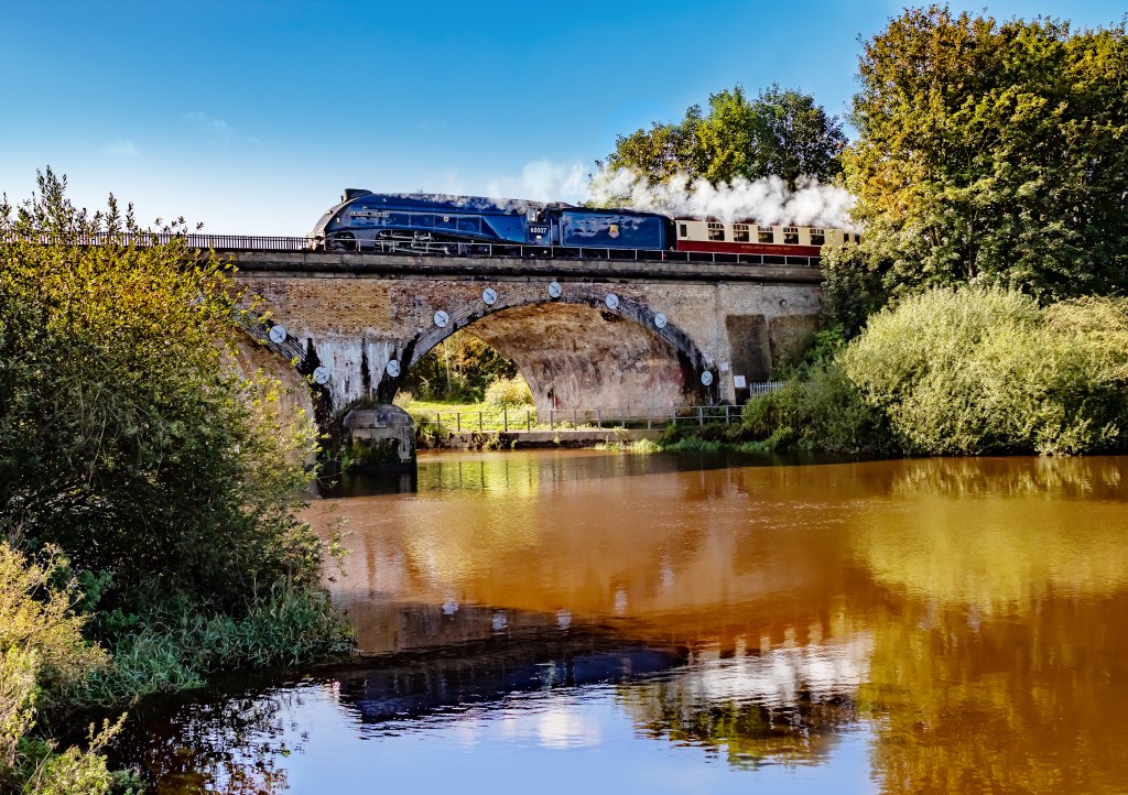 Picture Posted byalwev22nd Sep 2023Posted inUncategorized I was pleased with this so I thought that I would share it 60007 sir nigel gresley crosses the river aire near castleford en route to the north yorks moors railway Cheers, Alan. Share this: Share on X (Opens in new window) X Share on Facebook (Opens in new window) Facebook Like Loading... Related